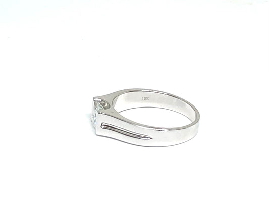 18K White Gold 1Ct Round Moissanite Solitaire Mens Ring