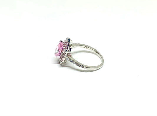 18K White Gold Double Halo Pink 2Ct Pear Cut Cubic Zirconia Engagement Ring